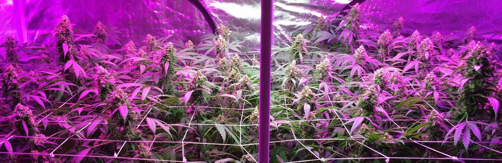 Manipulating the structure and/or size of plants can be very beneficial in a LED garden. S.C.R.O.G (screen of green), and S.O.G (sea of green) are common techniques to manage the shape and height of plants so that the light coverage is even, intense, and not wasted. Training plants laterally across a trellis allows many apical meristems (tops/colas) to grow, rather than just a few large ones. For this technique, trellis netting is installed horizontally above the plants, often at the beginning of flower, with more levels of netting installed above as needed. As the plant grows, it is woven through the mesh netting. There is no right or wrong way to trellis or "scrog", for example a garden could have 100 - 8" plants, or in the same space one large, trellised plant; both methods will produce very similar amounts. Regardless of the method, the goal remains the same, to maximize the production from the space and light.12: Water Amount and Temperature